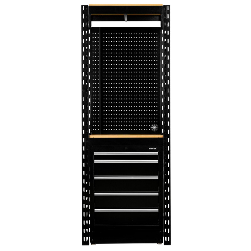BUNKER Étagère de rangement avec panneau arrière perforé et 1 armoire basses, 750x2210x520mm