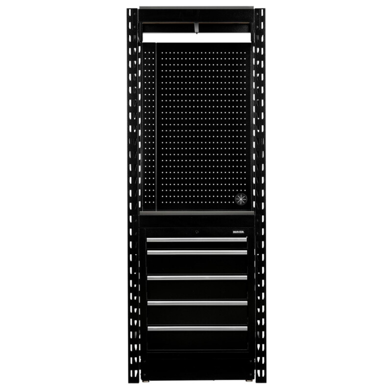 BUNKER Étagère de rangement avec panneau arrière perforé et 1 armoires basse, 750x2210x520mm