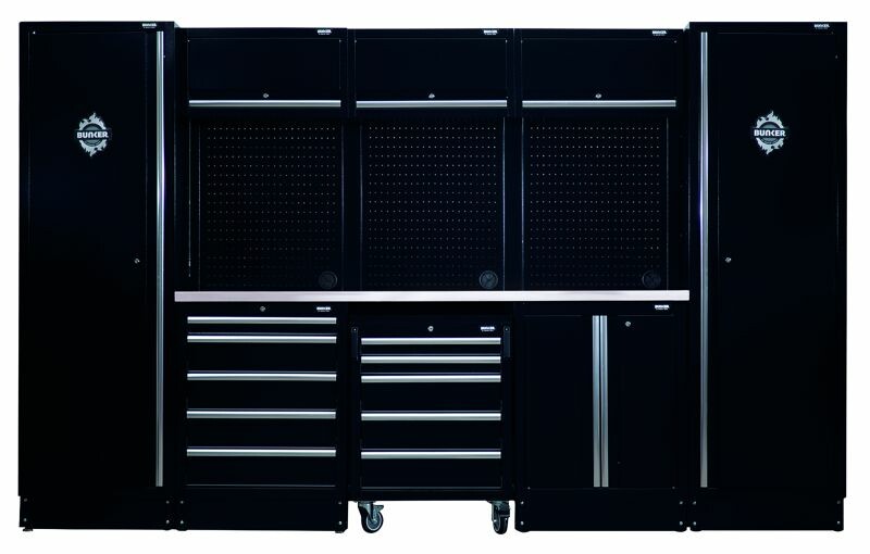 BUNKER 46cm Jeu de rangement modulaire avec plan de travail en acier inoxydable, 16pcs