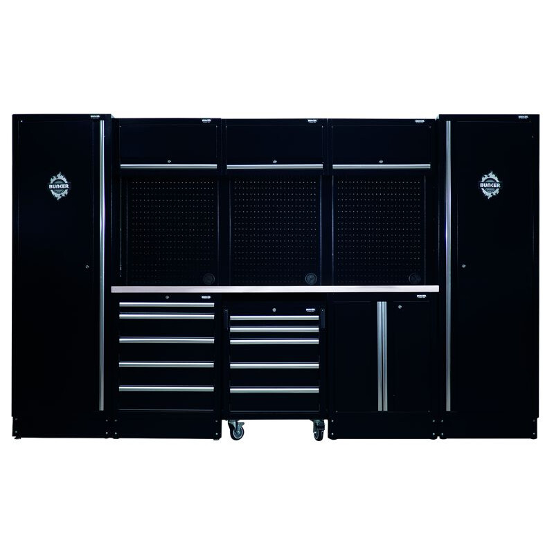 BUNKER 61cm Jeu de rangement modulaire avec plan de travail en acier inoxydable, 16pcs