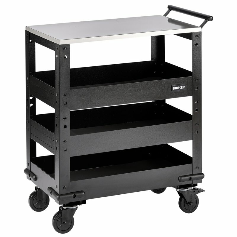 BUNKER Chariot d’atelier avec plan de travail en acier inoxydable, 3 étagères, 71cm