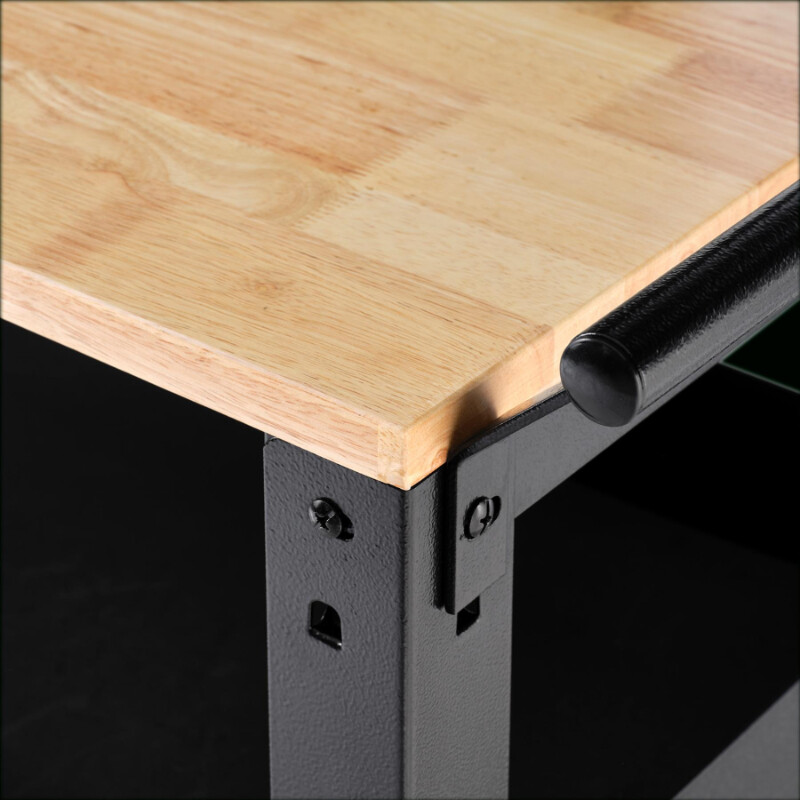 BUNKER Chariot d’atelier avec plan de travail en bois dur, 3 étagères, 71cm