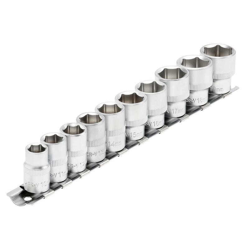 Socket Set on Metal Rail, 3/8" Sq. Dr. (10 Piece)