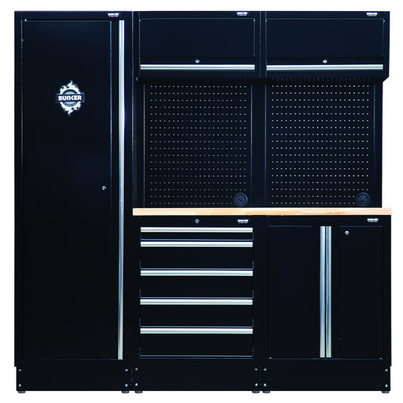 BUNKER 61cm Opbergcombinatie met hardhouten werkblad, 11dlg