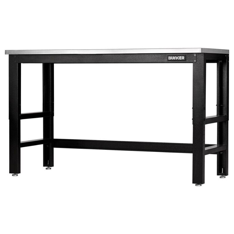 BUNKER Werkbank, in hoogte verstelbaar, met roestvrijstalen werkblad, 155cm