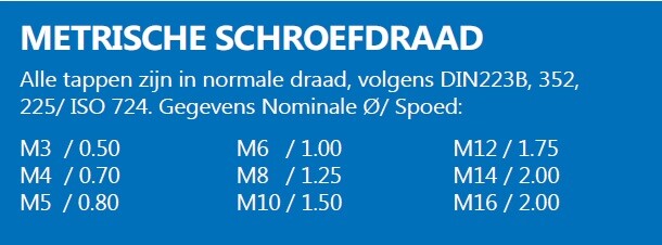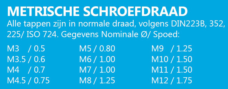 Handtappenset, M4, 3dlg (voor, midden, eind)